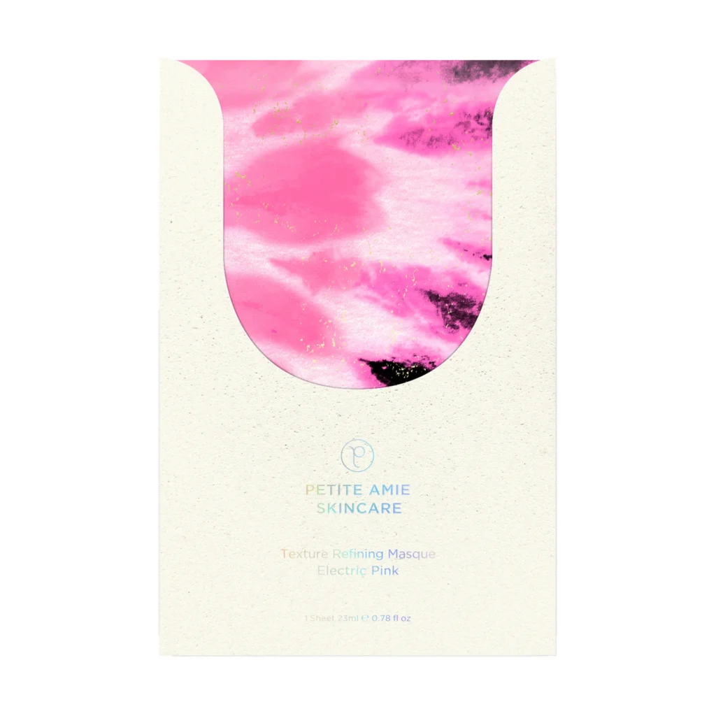 PETITE AMIE SKINCARE tekstūrą tobulinanti lakštinė veido kaukė „Electric Pink“